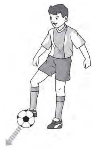• Menggiring bola dibiasakan dengan menggunakan kaki kanan dan kiri